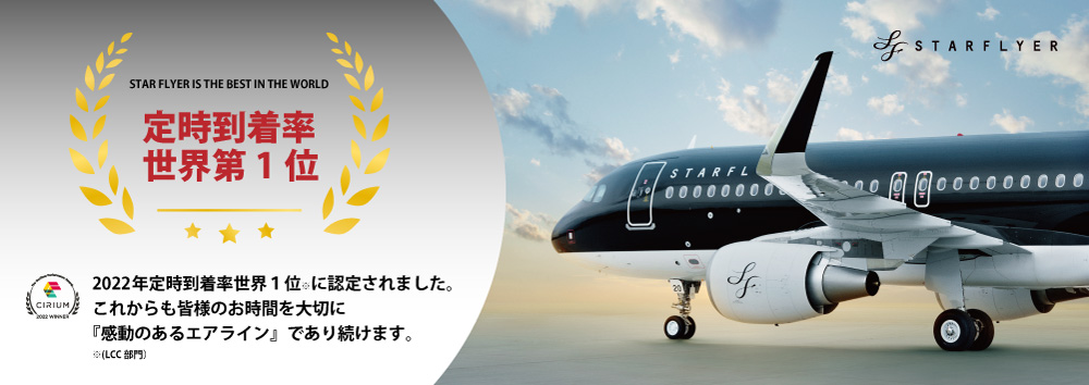 おかげさまで、スターフライヤーは2022年定時到着率で世界1位に認定されました。