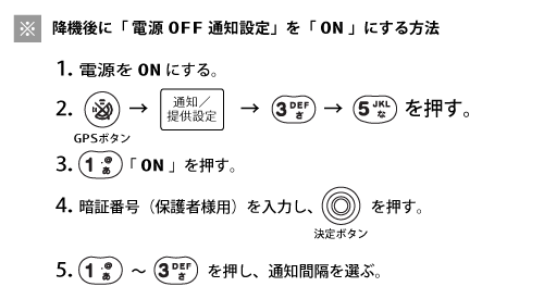 NTT Docomo Kids’ Keitai™ F801i may periodically turn on and transmit data automatically even while the cell phone itself is turned off if Power Off Alerts are turned on in Settings.