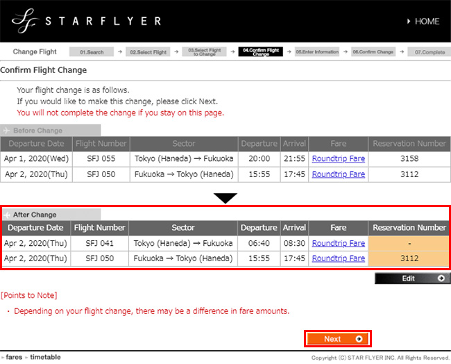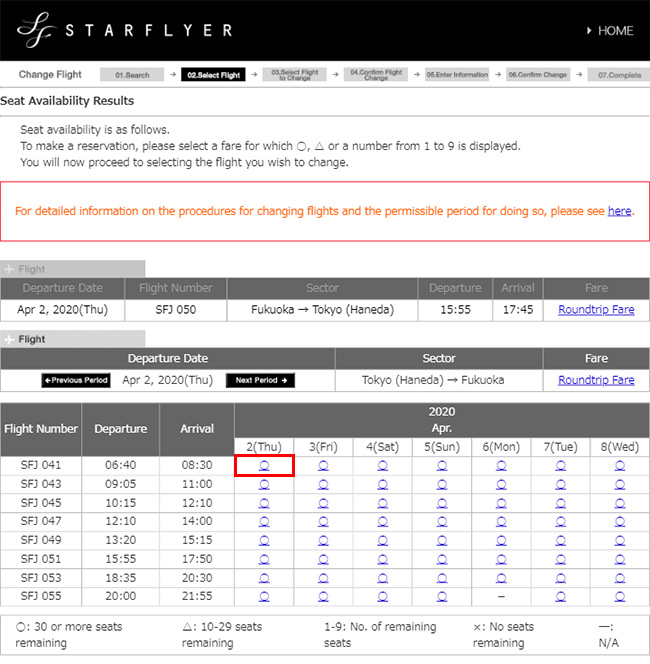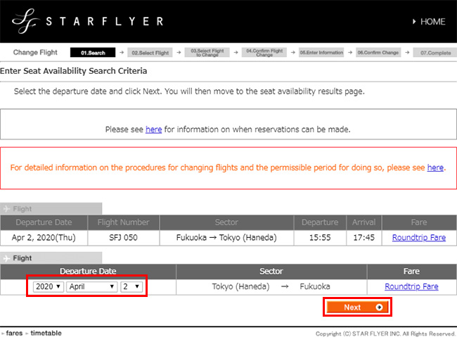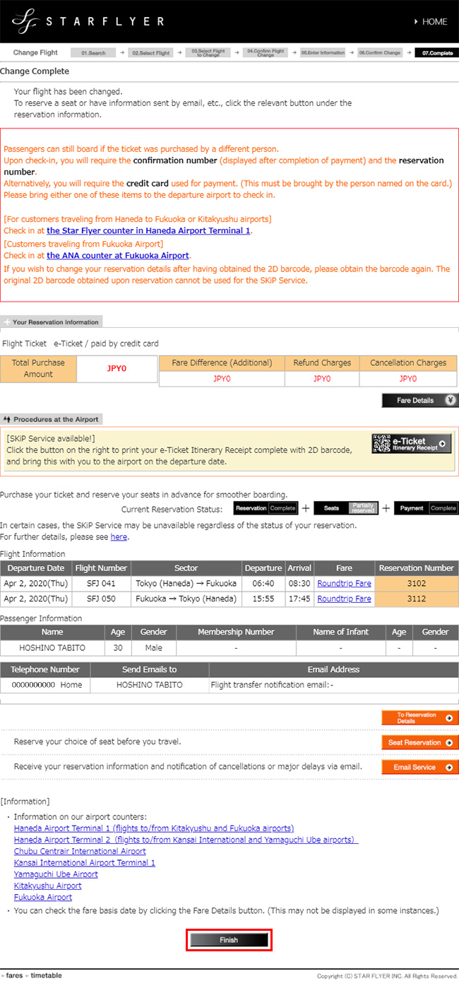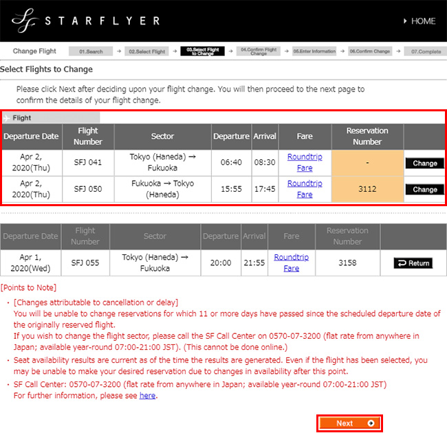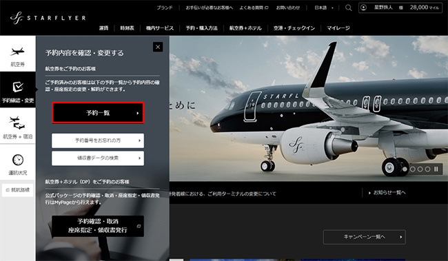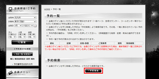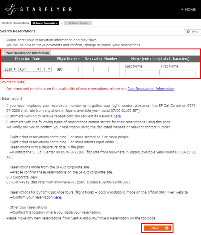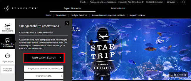 After clicking on ‘Confirm / Change Reservation’ on the Star Flyer official website, enter your reservation information from ‘Reservation Search’ and perform a reservation search.