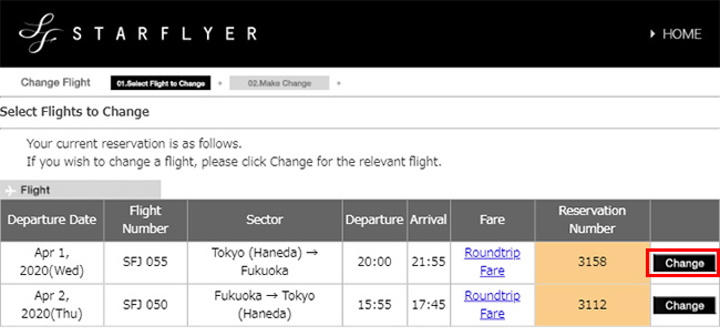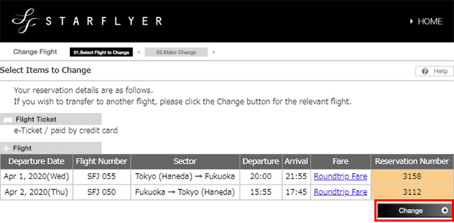 Tap ‘Transfer Procedure’ on the reservation details confirmation screen and select ‘Change’ for the flight.