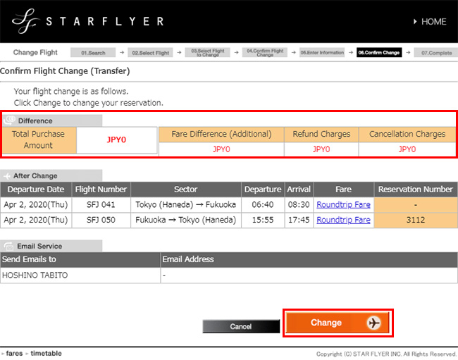 Check that there is no cost difference on the change confirmation screen, tap ‘Change’, and then end the procedure by tapping the ‘Close’ button at the bottom of the change completion screen.