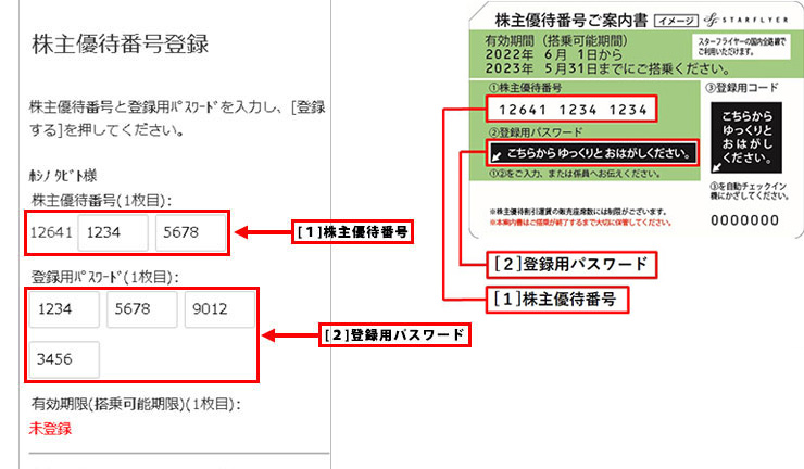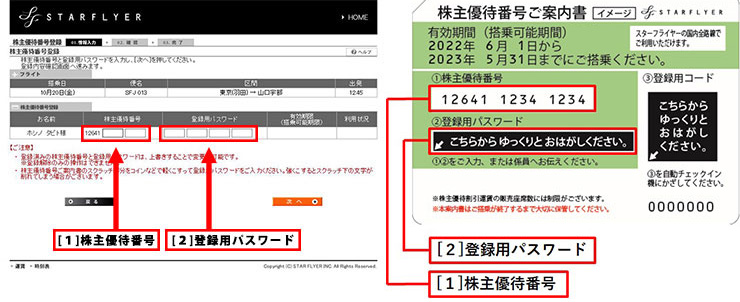 It is possible to reserve and purchase a ticket even if you don’t have your “Shareholder’s Benefit Number Guide” in your possession. (This excludes purchases made at the Star Flyer check-in counter and travel agencies.) Once you receive it, please register your shareholder’s benefit number and your registration password.