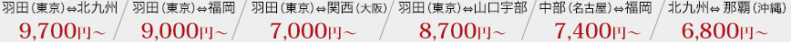 羽田(東京)発着 中部(名古屋)発着 関西(大阪)発着 北九州発着 那覇(沖縄)発着 大人