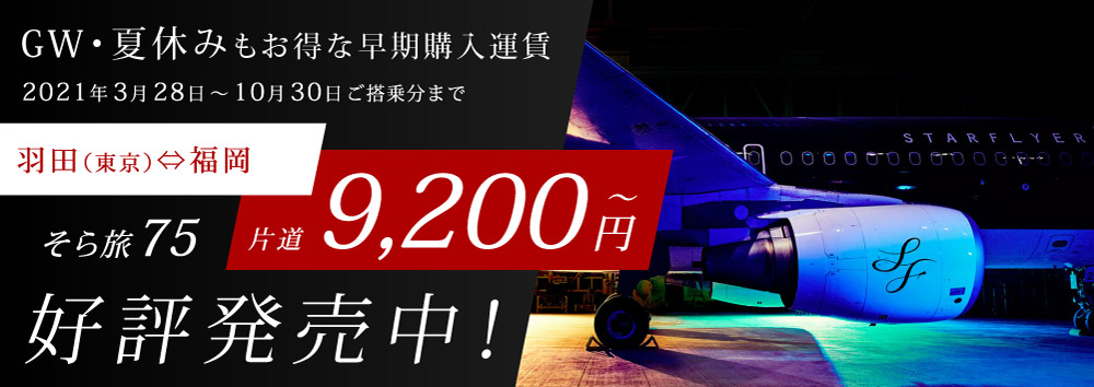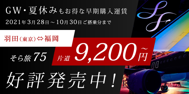 ※2021年3月28日~10月30日の期間でそら旅75運賃は2021年4月13日ご搭乗分より設定がございます。