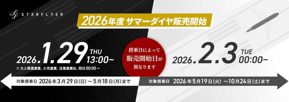 | 2026年5月19日(火)~10月24日(土)搭乗分 | 2026年2月3日(火)00:00~