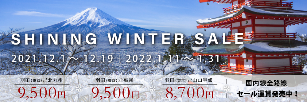 2021年冬ダイヤ売り出しを記念し、日頃の皆様への感謝をこめて、2021年12月1日(水)~12月19日(日)および2022年1月11日(火)~1月31日(月)ご搭乗分に「Shining Winter Sale」として特別運賃を設定し、2021年8月31日13:00より発売いたします。