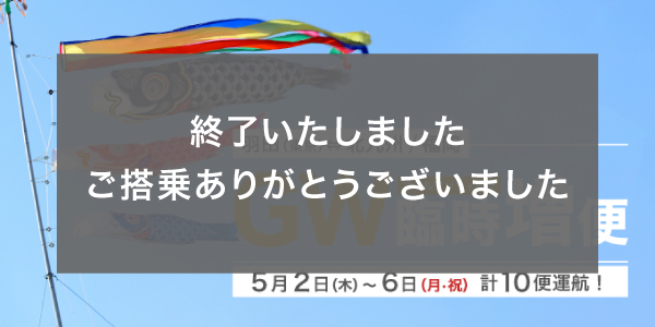 ご好評のうちに終了いたしました。ご搭乗ありがとうございました。