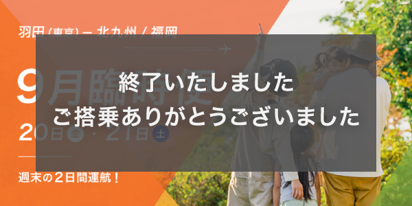 9月東京(羽田)⇔ 北九州・福岡線 臨時便