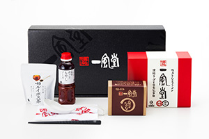 コクと深みを追求した一風堂オリジナルのラーメン「赤丸」&創業当時の味を伝承した一風堂原点のラーメン「白丸」に、こだわりの「辛子高菜」、健康・美容によい「ルイボス茶」、大人気の「ホットもやしソース」をセット。さらに一風堂オリジナルバンダナ、箸、蓮華を付けた大変豪華なセットです。