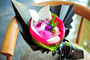 お客様のご利用シーンやイメージをヒヤリングのうえ、世界に1つのオリジナル花束を制作し、ご希望の日時、場所へお届けさせていただきます。ご利用用途等については、お申し込み後、サンジョルディフラワーズより、お電話にて直接お客様へ確認させていただきます。