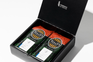 ブレンドコーヒー2袋をロゴ入りのギフトボックスに入れてお届けします。