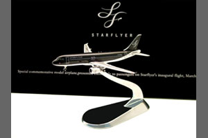 世界的デザイナーである松井龍哉氏がデザインしたスターフライヤーのA320。デザイナーの細かいこだわりの部分も含め、高い完成度で再現されました。本商品は、2006年3月16日初便搭乗のお客様限定で配布されたものと一緒のタイプで、3機はそれぞれ「JA01MC」「JA02MC」「JAO3MC」がナンバリングされている貴重品です。人気のGemini jets社製です。
