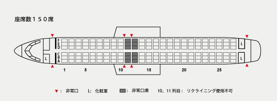 非常口座席(11/12列目、一部機材では11列目のみ)にお座りのお客様には、万一の場合、緊急脱出時の援助をお願いいたします。