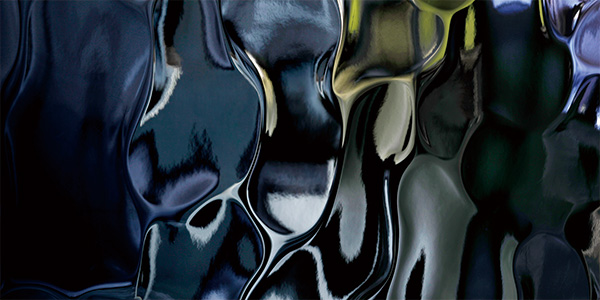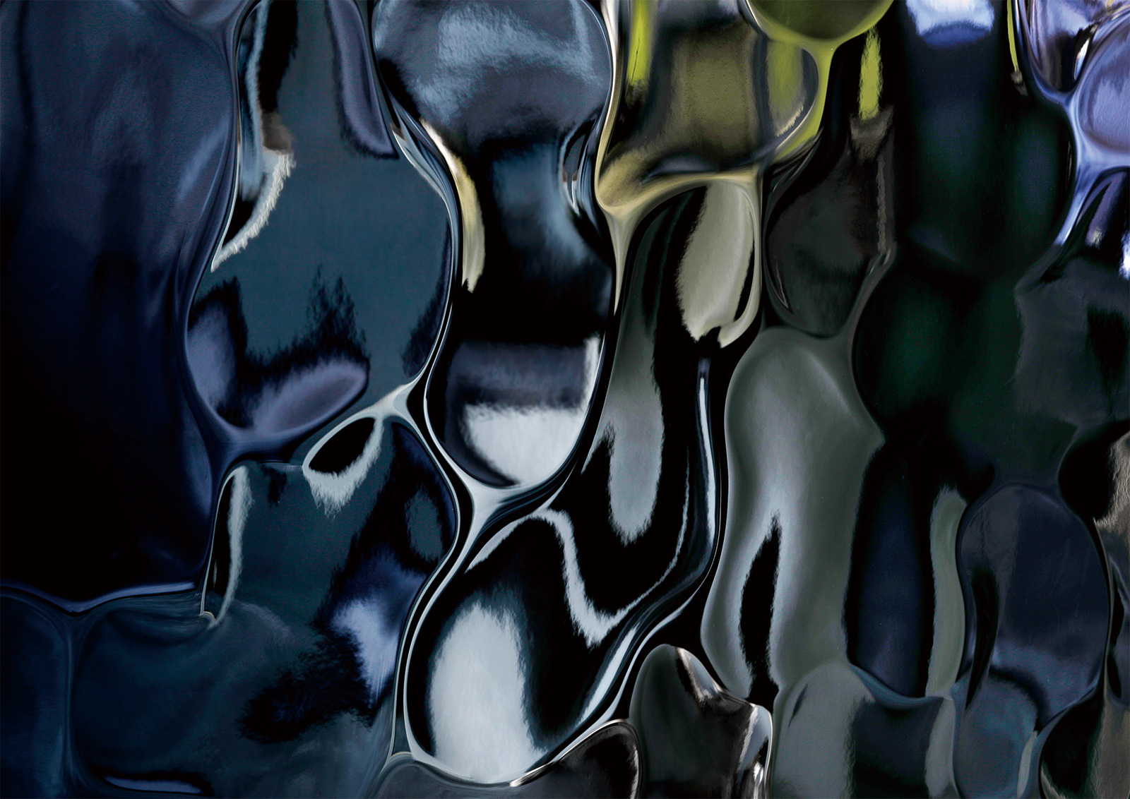 水面が光を反射し、揺らぐ光景を切り取ったような1カット。見る人によってイメージが異なるであろう、謎めいた被写体の正体は「ミステリアス ステンレスミラー リップルス」と名付けられたステンレスのパネル。宝石や大理石が、磨くことで美しい輝きを放つのと同様に、ステンレスも磨きあげることで多彩な表情をみせ、素材本来の輝きと個性を放っていく。