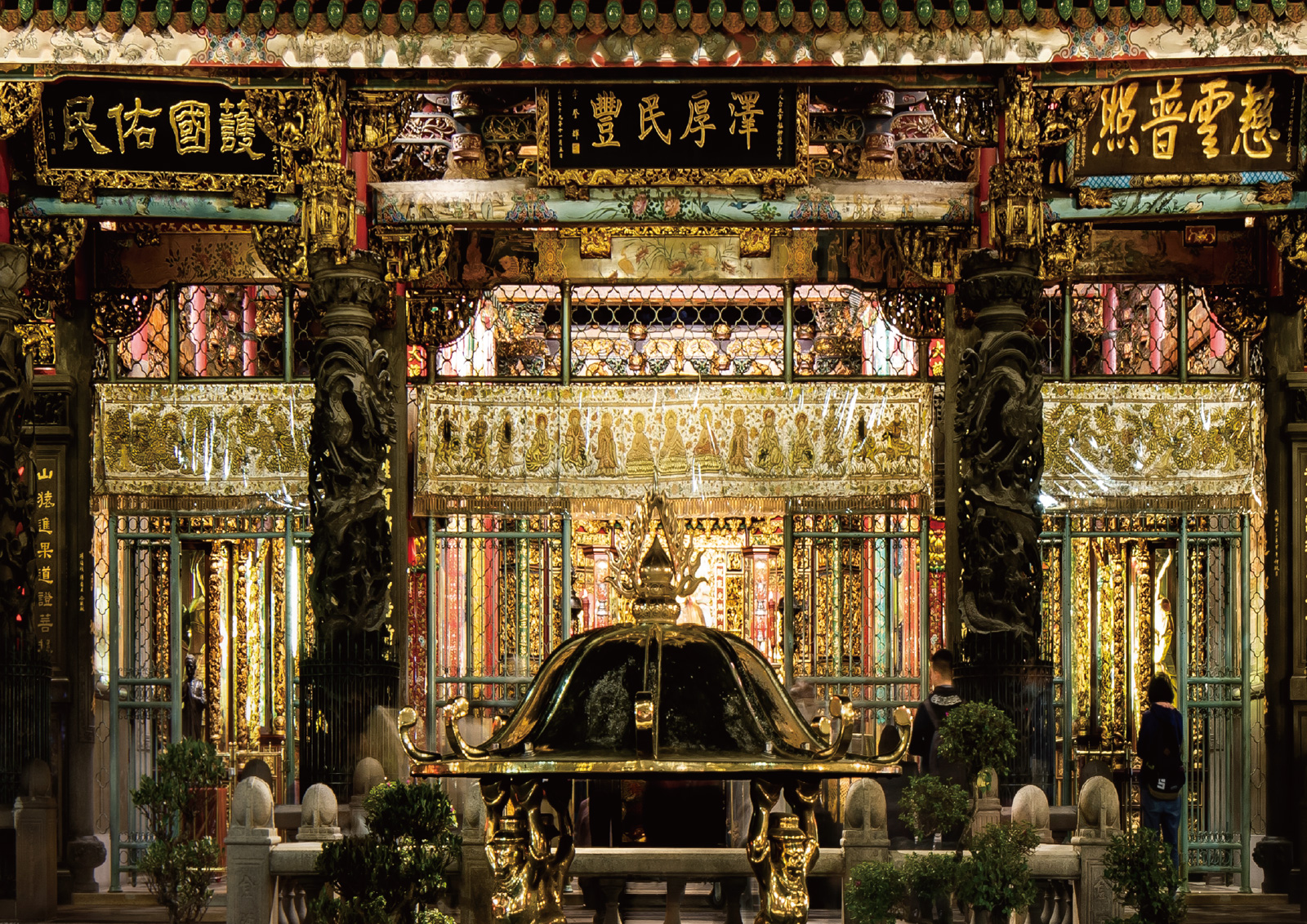 霊験あらたかなエピソードも残っている。第二次世界大戦の終戦直前(1945年)、米軍の空襲で石柱までもが全壊する惨状の中、本尊と観音菩薩像だけは無傷だった。そこで人々は空襲があるたびに観音菩薩の膝下に避難。激しい空襲の中、一人も死傷者をださなかったらしい。驚異的なご加護は今に語り継がれ、龍山寺は「台北随一のパワースポット」としての地位を確立。世界中の観光客が立ち寄る人気の場所になっている。