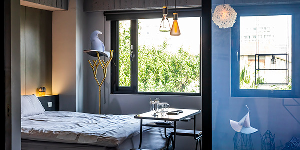場所は、生活感漂う下町の雰囲気に、先進的なショップが点在する人気のエリア・大同区。お世辞にもホテルが入っているとは思えない、古い雑居ビルの5階をリノベーションし、2015年にオープン。客室は5つで宿としては小規模だが、秀逸なコンセプトと高いホスピタリティーが評判となり、主要な旅行サイトで次々に高評価を獲得。世界的に権威のあるデザイン賞のひとつ「iFデザイン賞」を受賞するなど、国内外で話題のホテルだ。