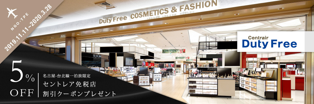 【名古屋-台北線一泊旅限定】セントレア空港免税店割引クーポンプレゼント