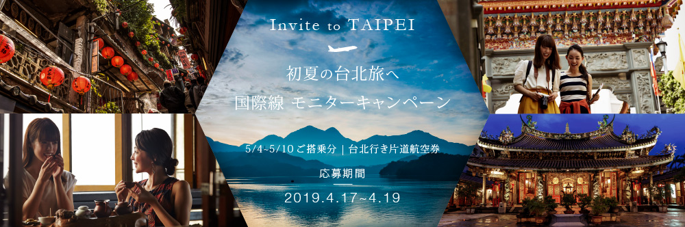 | キャンペーン内容 | 応募条件(以下項目参照)に同意いただけるお客様の中から、抽選で台湾行き片道航空券をプレゼントいたします。 |