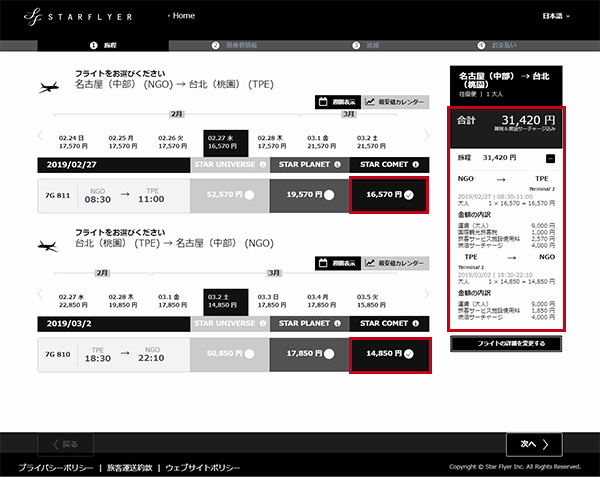 割引の適用は対象搭乗期間内のSTAR COMET運賃に限ります。お日にちおよび運賃を間違えないようご注意ください。
