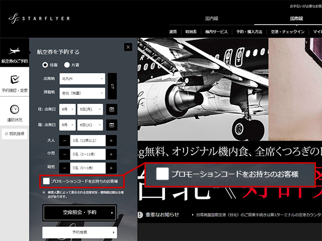 セール運賃のご利用には、インターネットにてご予約時にプロモーションコードの入力が必須です。