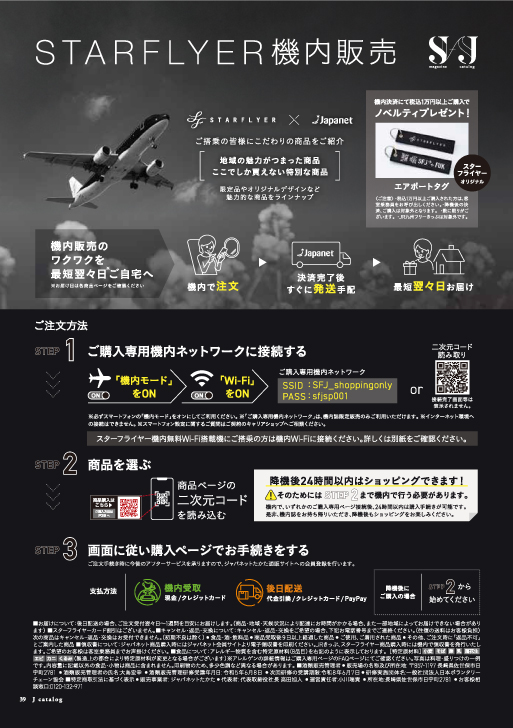 国際線:機内販売 機内販売のご案内 機内販売は、2024年4月をもちまして終了いたしました。 ※ 2023年3月~2024年4月の期間にご購入された商品に関してのお問い合わせは、ジャパネットお客様相談センター(0120-132-971/09:00~18:00)へご連絡ください。