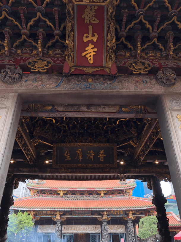 こちらのお寺は、1738年の創建から200年以上の歴史があり、台湾の重要文化財として保護されています。仏教、道教などから約20の神仏が集まる龍山寺は、向かって右側の 「龍門」から入ります。