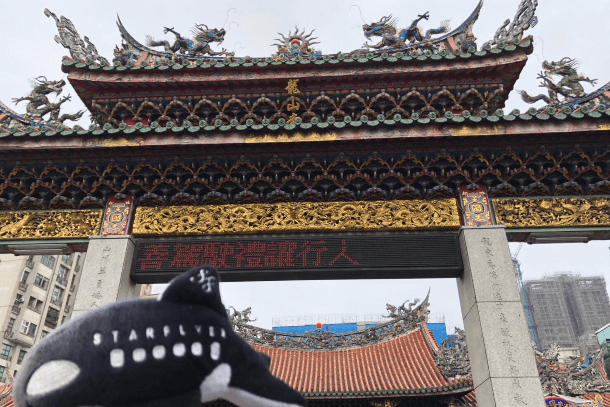 鮮やかなお寺の瓦の色や、絢爛な装飾が目を惹く龍山寺。春節(台湾の旧正月)に訪れた際は、身動きが取れないほど多くの方がお参りされていました。爆竹の音やたくさんの供えものでとても華やかでした。