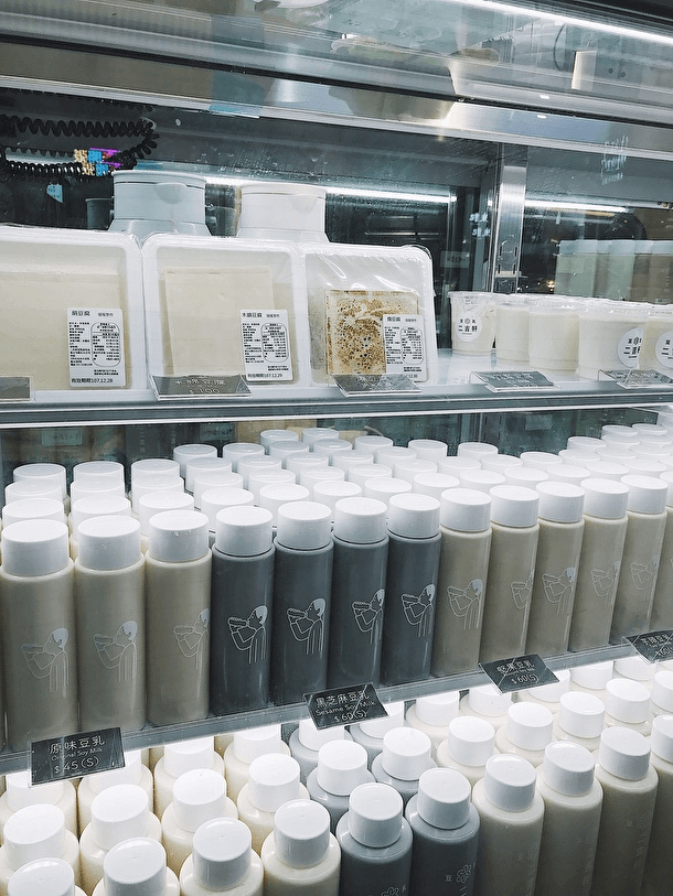 おしゃれな豆乳屋さんで、豆腐や豆乳入りのペットボトルも購入できます。(タロイモ豆乳が一番人気のようです)
