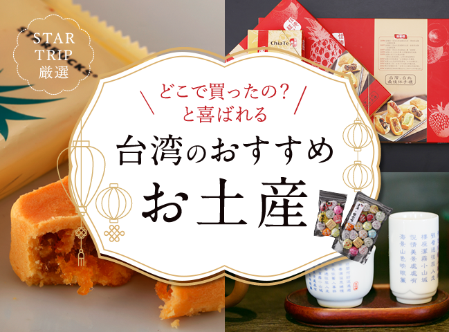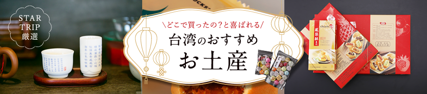 台湾のおすすめお土産:情報一覧 台北おすすめ CAのお気に入り 空席照会・予約 台湾菓子 佳徳糕餅の名物パイナップルケーキ いろんな「味」が選べて、どれも美味!地元ファンも通う台北の人気菓子店 〈 台北市松山區 〉 Check! 生活雑貨 スターバックスコーヒーのご当地マグ お土産や「自分買い」にもおすすめ。カラフルポップな柄が勢ぞろい 〈 台北市大同區 〉 Check! 調味料 新點子茶舗の黒胡麻油生姜ペースト お豆腐や炒めもの、白ごはんのおともに。コレひとつで美味しさが格段に上がります 〈 台北市大同區 〉 Check! 台湾茶 林華泰茶行の上質台湾茶 老舗問屋で手に入れる台湾茶。真空パックタイプは保存も長持ち 〈 台北市大同區 〉 Check! 生活アイテム 林華泰茶行/九份 海悦楼茶坊の茶器類 白磁や繊細な絵付けモノなど愛らしい台湾茶器との出合いを 〈 台北市大同區、新北市瑞芳區(九份) 〉 Check! 台湾菓子 星巴克 保安門市店(スターバックスコーヒー 台湾・保安店)のキューブパイナップルケーキ コロンと可愛いキューブ型台湾スターバックスの限定スイーツです 〈 台北市大同區 〉 Check! 文具/雑貨 來好の生活グッズ&ステーショナリー ポップで気の利いた台湾製グッズ「どこで買ったの?」と尋ねられそうです 〈 台北市大同區 〉 Check! 台湾茶 新點子茶舗の個包装プーアール茶 1個から買えて、見ためもキュート!味の違いを楽しめるセットも揃います 〈 台北市大同區 〉 Check! ※営業時間の変更・臨時休業に関する情報は、各施設/店舗のホームページやお電話にてご確認ください。 ( CAMPAIGN ) ( RECOMMEND ) 観光スポット、カフェ、食事 etc... 小倉/北九州の観光 スターフライヤー[国内線コンテンツ] 観光スポット、カフェ、食事 etc... 小倉/北九州の観光 スターフライヤー[国内線コンテンツ]