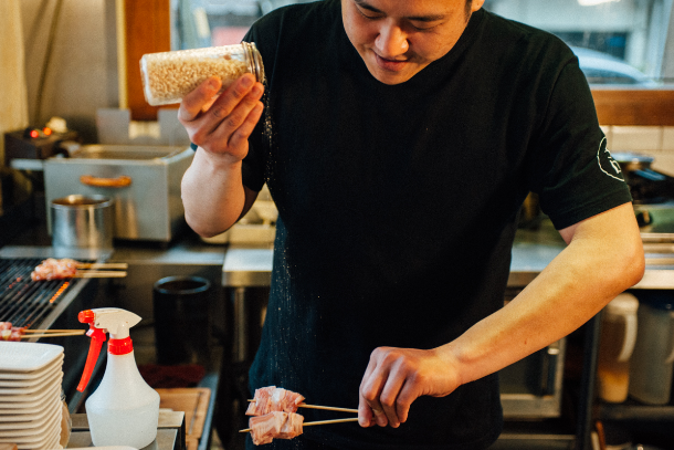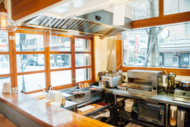 おしゃれなインテリアとシンプルなデザインのカウンターが若者の間で人気の串焼き店『吉利串燒(ジーリツァンスァウ)』。