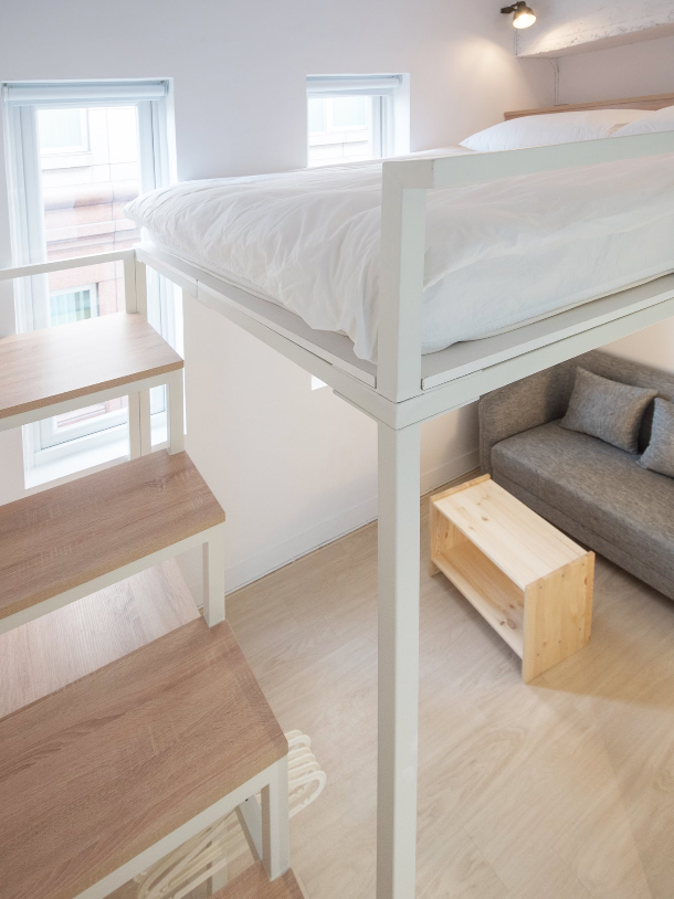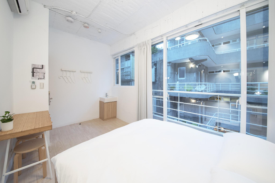 どの部屋も自然光が入る気持ちのよい空間となっており、部屋タイプは、シングル、ダブル、ドミトリーから選べます。部屋には電子ロッカーが設置されてあり、セキュリティー面も安心。