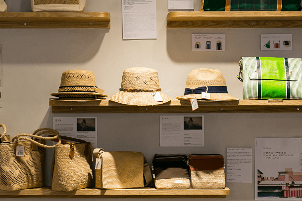台湾北西部の都市・苗栗(びょうりつ)で生まれたブランド「藺子(リンツー)」の帽子やバッグ類は、台北市ではほとんど見かけないレアなアイテムです。
