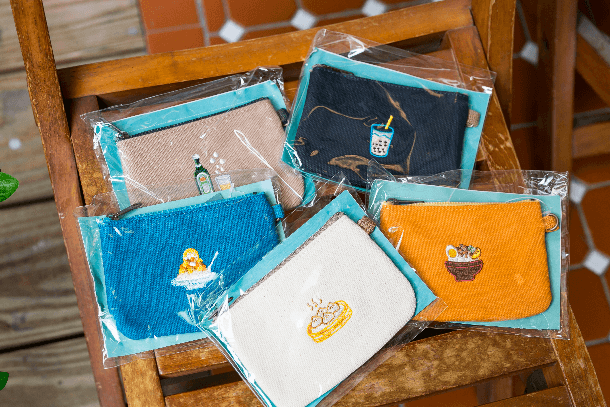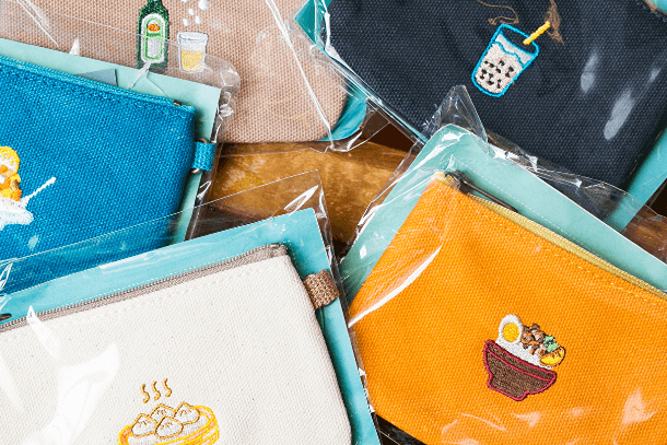 こちらは、メイド・イン・台中市の人気商品。小籠包やタピオカミルクティ、マンゴーかき氷など、台湾らしいモチーフを刺繍であしらったコインパース(200元〜)は、日常使いにオススメです。