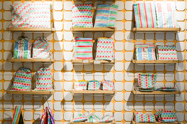 來好オリジナルバッグやポーチは、漁師網バッグでおなじみの台湾の伝統的な柄をリデザインして個性的なアイテムに変身させたもの。コースター(150元〜)や巾着袋(290元〜)などの小さなアイテムは購入しやすい価格帯でお土産・ギフトにもぴったりです。