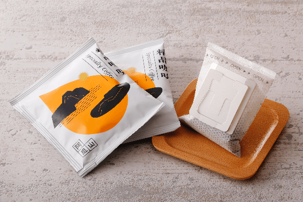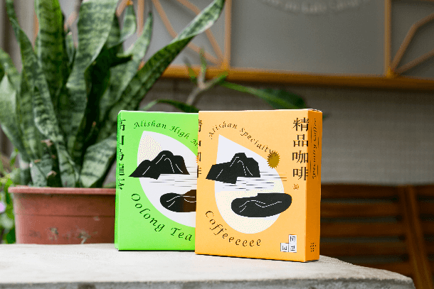 オレンジ色のパッケージは、ドリップ式の珈琲セット(阿里山珈琲:3袋入・160元〜)。