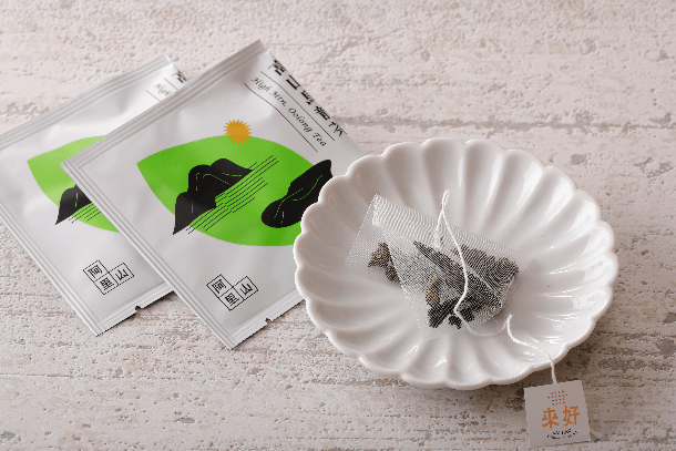 鮮やかな黄緑のパッケージは、お茶の名産地である「阿里山」で栽培されたお茶を手軽なティーパックにしたもの(阿里山茶:3袋入・99元〜)。