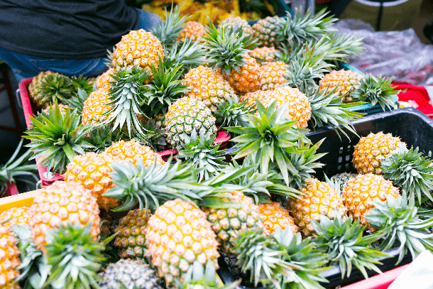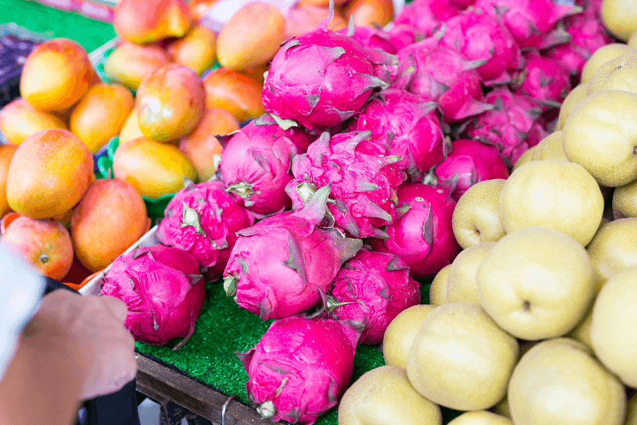 そんな朝市で、旅行者にとって嬉しいのは、フルーツ天国・台湾の新鮮な果物が低価格で味わえること。完熟マンゴーが籠盛りで安く並んでいたり、パイナップルを食べやすいサイズにカットしてもらえたりと、お店のサービス精神も満点!オレンジやココナッツ、レモンなどの果物をその場で搾ってフレッシュジュースにしてもらえるお店もあります。