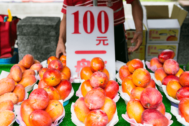 台湾では、果物やお茶は600g単位(一斤)で販売されています。半分だけ手に入れたい場合は「バンチン(半斤)」と言えば半分にしてくれます。100g単位であれば筆談でお願いするのもよいでしょう。