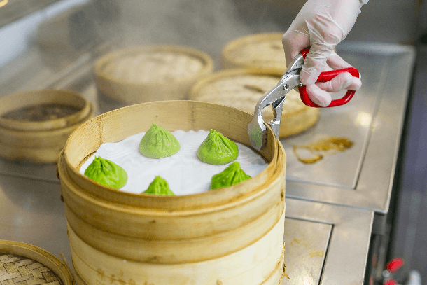 からだに優しい天然色素を使うのも、お店のこだわりです。例えば、高麗人参味の「皮」の色付けに用いられているのは、ほうれん草。また、小籠包の味が8種類なのは、中国で縁起がよいとされる数字「8」にちなんだもの。旅中に食すると、素敵な出来事が起こりそうですね。