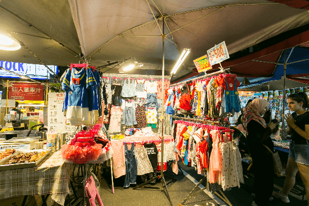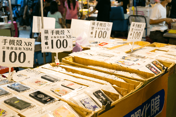 また、「饒河街観光夜市」が面白いのは、立ち並ぶお店の多彩さ!飲食の屋台の間に突如、美容グッズや櫛を扱う屋台、下着屋さん、携帯ケースのショップ、子ども服店・・・などが入り混じっており、見る者を飽きさせません。
