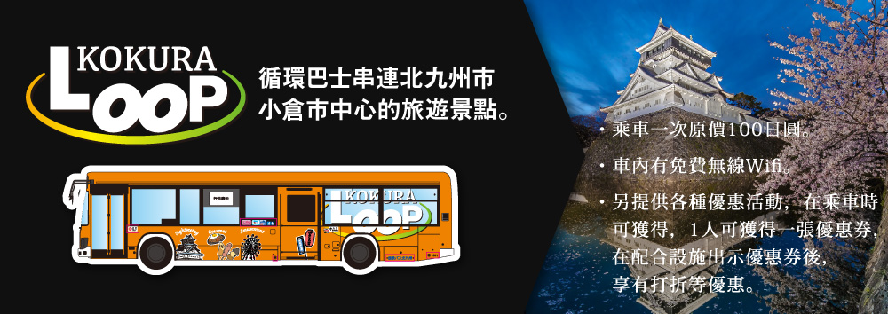 限搭乘星悅航空的訪日外國乘客限定 「KOKURA LOOP BUS」小倉循環巴士免費搭乘券! 活動日期:2019年2月1日~12月20日