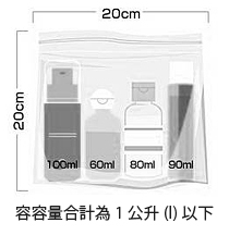 每人僅限一個透明塑膠夾鏈袋。請向行李檢查處的檢查人員出示透明塑膠夾鏈袋並與其他行李分開。
