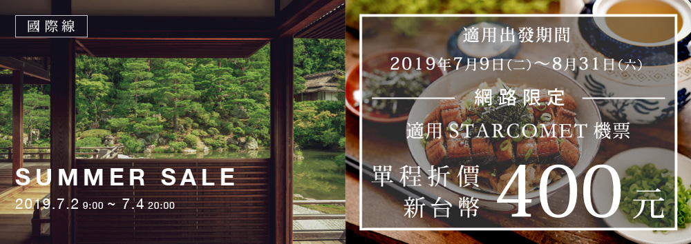 | 適用出發期間 | 2019年7月9日(二)~8月31日(六) |