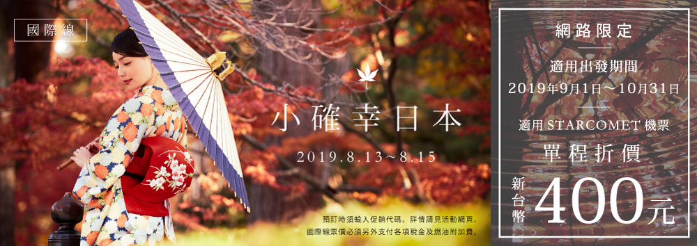 | 適用出發期間 | 2019年9月1日(日)~10月31日(四) |