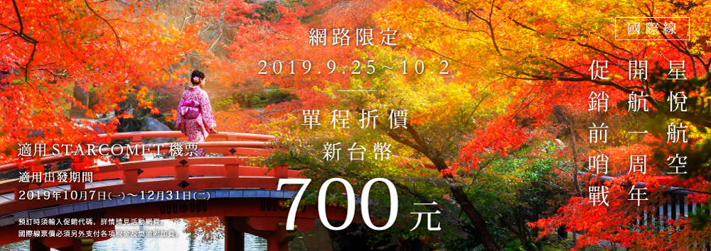 | 適用出發期間 | 2019年10月7日(一)~12月31日(二) |