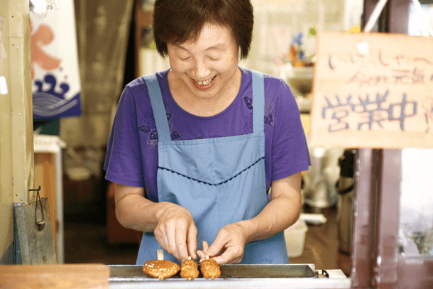看著五平餅被仔細燒烤的樣子也是樂趣之一。有著上等味道的五平餅是個即使在平日也是要排隊的人氣美食。