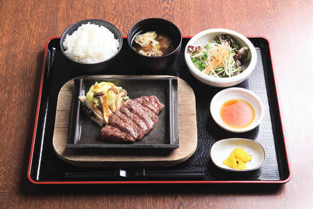 只嚴選使用日本三大和牛近江牛的母牛做為料理食材。白飯、味增湯、沙拉,全部都只使用嚴選的近江食材。