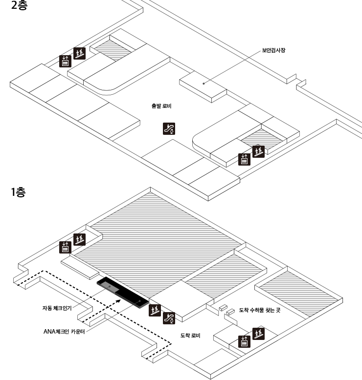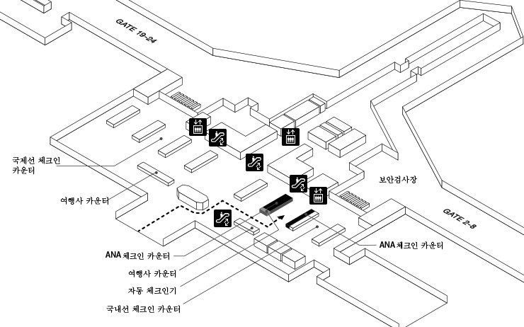 그 밖의 장소(제2 터미널 빌딩 등)에서는 수속을 할 수 없으므로 주의하십시오. - *