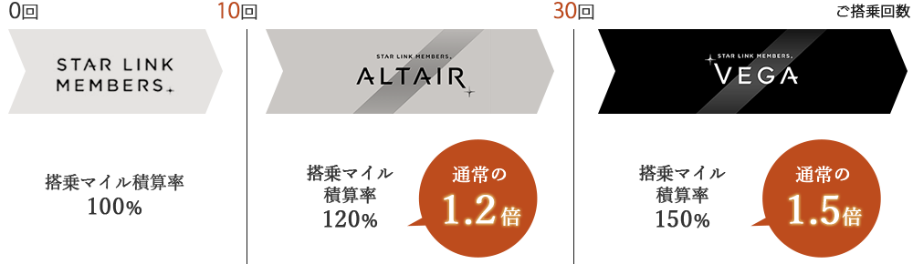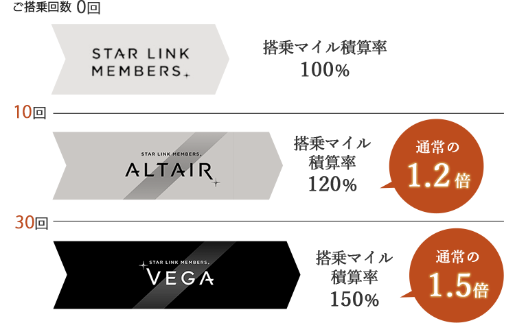 会員ステイタスがより身近に。搭乗する度にステイタスに応じたボーナスマイルを付与や様々なサービスをご提供します。