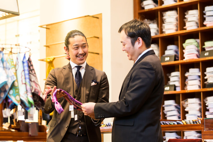「パーソナルショッピングサービス」のご利用が多いのがメンズのドレススタイル。専門スタッフが最高の1着をご提案いたします。